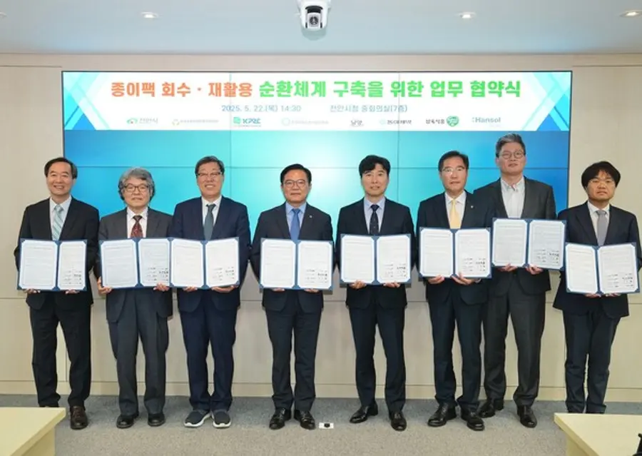 이번 업무협약은 국내 종이팩 재활용 감소 우려가 제기됨에 따라 천안시가 관내 공동주택을 중심으로 종이팩 회수부터 재활용, 재생 제품 활용까지 전 과정을 마련해 ‘종이팩 선 순환 체계’를 구축하는 프로젝트다.