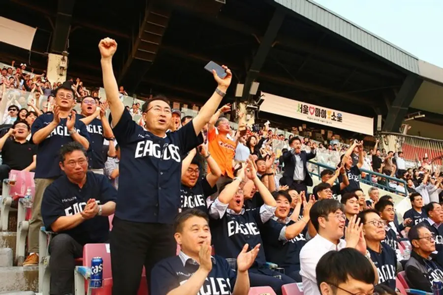 ‘이글스 데이’는 구성원들의 화합과 자긍심을 고취시키고 다양한 부서 간 소통의 시간을 마련하고자 기획된 행사다. ㈜한화 임직원들은 한마음 한뜻으로 열띤 응원을 펼쳤으며 한창이엔씨, 지에프텍 등 협력사 임직원들도 함께 경기를 즐겼다.
