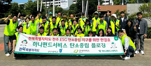 |스마트투데이=김세형 기자| 하나펀드서비스(대표 김덕순)는 지난 5일 전주시 완산구 전주대학교 일대에서 전북특별자치도청ㆍ전주대학교ㆍ굿네이버스와 함께 지역사회와의 상생 및 환경정화를 위한 플로깅 활동을 진행했다고 8일 밝혔다.