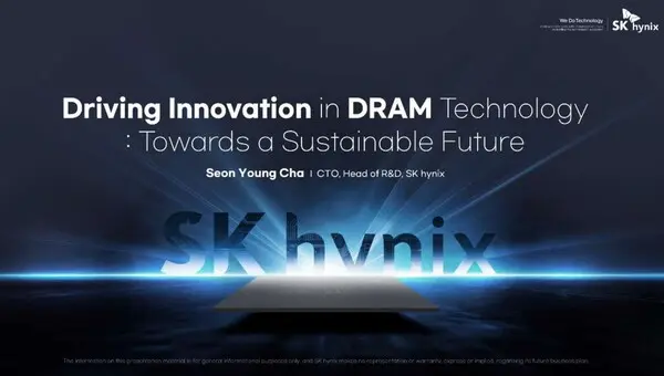 SK하이닉스 차선용 미래기술연구원장(CTO, Chief Technology Officer)은 10일 행사 3일차 기조연설에서 ‘지속가능한 미래를 위한 D램 기술의 혁신 주도(Driving Innovation in DRAM Technology: Towards a Sustainable Future)’를 주제로 발표를 진행했다.