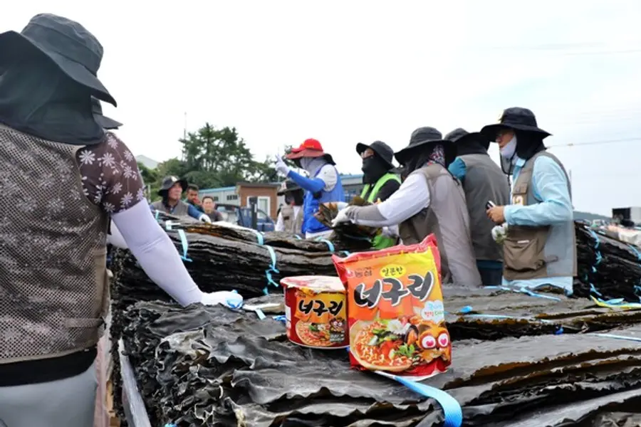 |스마트투데이=김윤진 기자| 농심은 최근 전남 완도군 금일도에서 진행된 다시마 위판(경매)에 참여해 너구리 생산에 사용할 햇다시마 490톤을 구매했다고 10일 밝혔다.