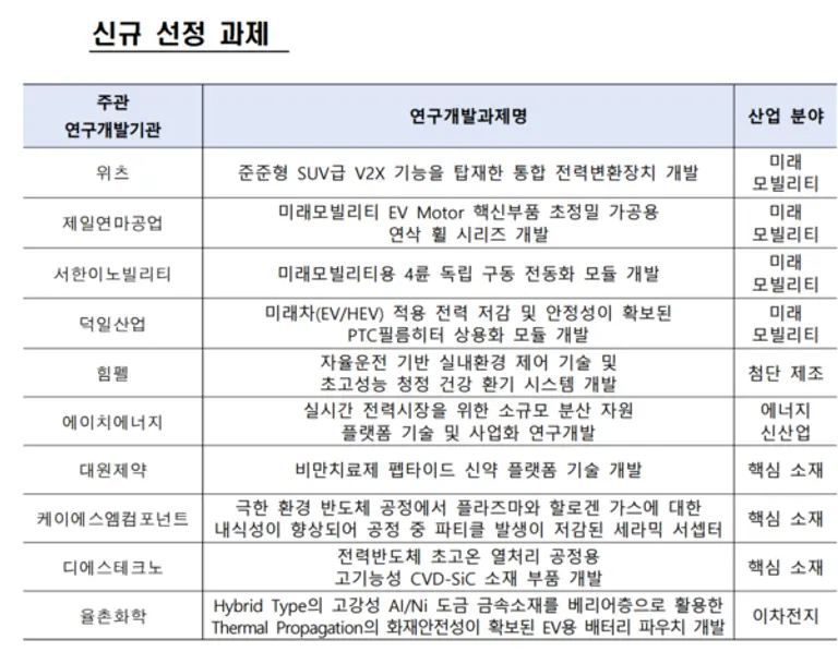 이번에 선정된 10개 기업은 미래 모빌리티, 이차전지, 에너지 신산업, 핵심소재, 첨단 제조 등 전략산업 분야에서 기술 혁신과 글로벌 경쟁력 확보에박차를 가할 계획이다.