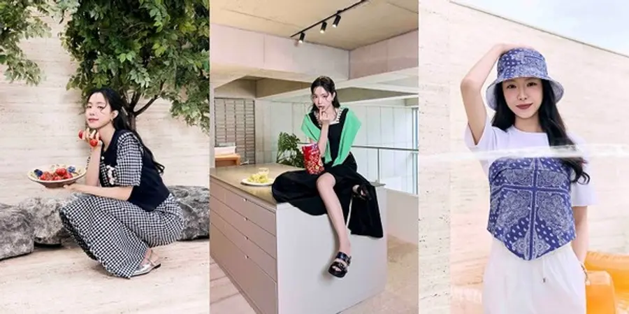 이 외에도 레드 포인트 니트 가디건과 밴딩 쇼츠를 활용해 스포티한 일상룩을, 블랙 앤 화이트의 스트라이프 탑과 블랙스커트, 버킷햇을 매치해 페미닌한 썸머룩을 완성하는가 하면, 브라운 컬러의 슬리브리스 탑과 슬랙스를 셋업으로 매치해 트렌디하고 시크한룩을 제안했다.