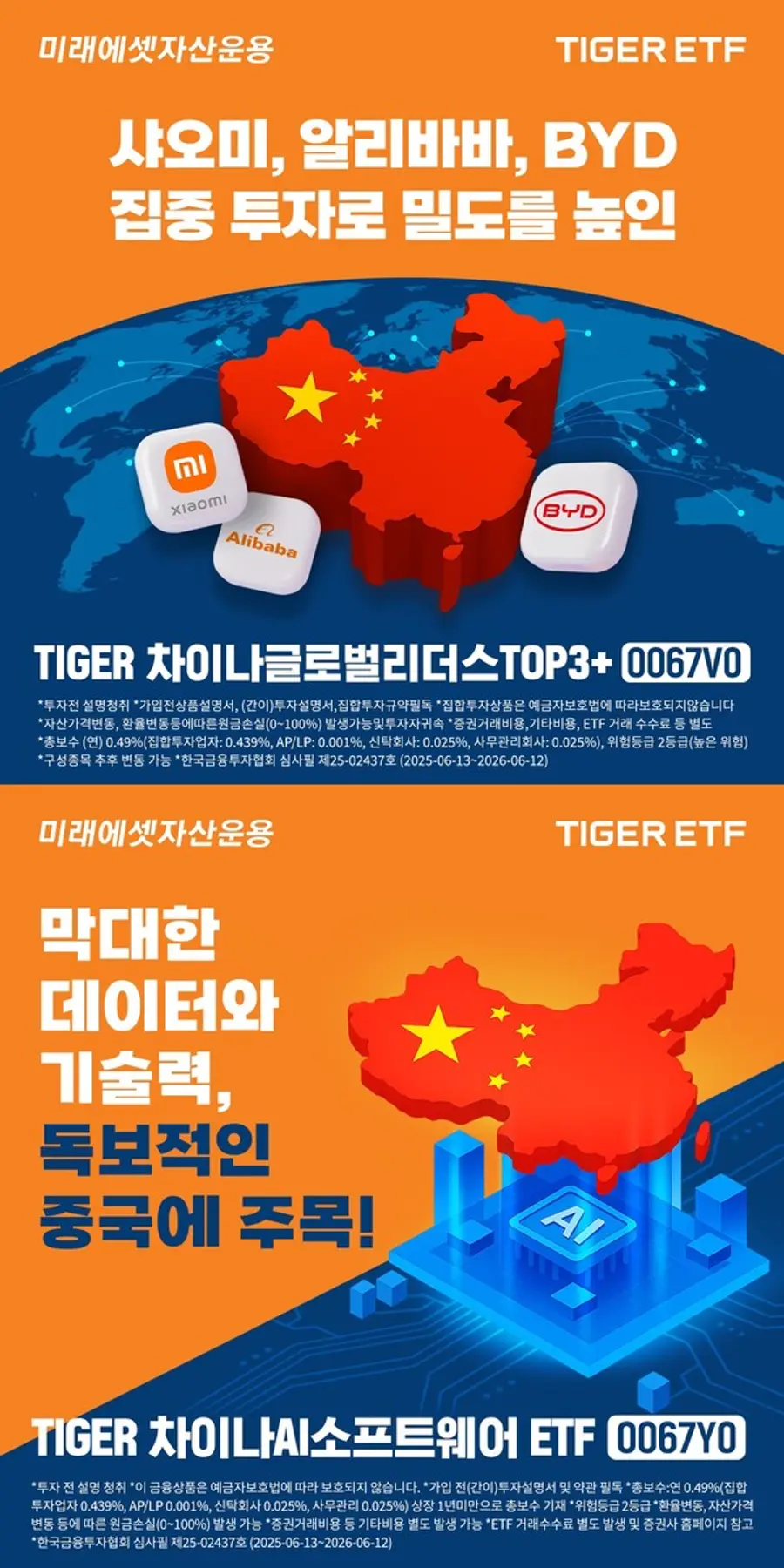|스마트투데이=김세형 기자| 미래에셋자산운용은 한국거래소에 ‘TIGER 차이나글로벌리더스TOP3+ ETF(0067V0)’, ‘TIGER 차이나AI소프트웨어 ETF(0067Y0)’ 2종을 신규 상장한다고 17일 밝혔다.