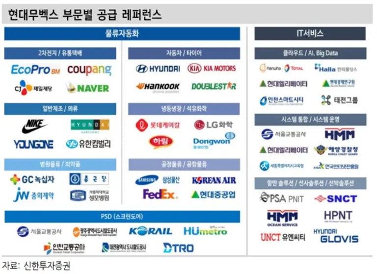 현대무벡스는 무인화, 효율화를 지향하는 유통 및 제조 대기업의 투자가 본격화되는 트렌드의 최대 수혜업체라고 신한투자증권은 봤다.