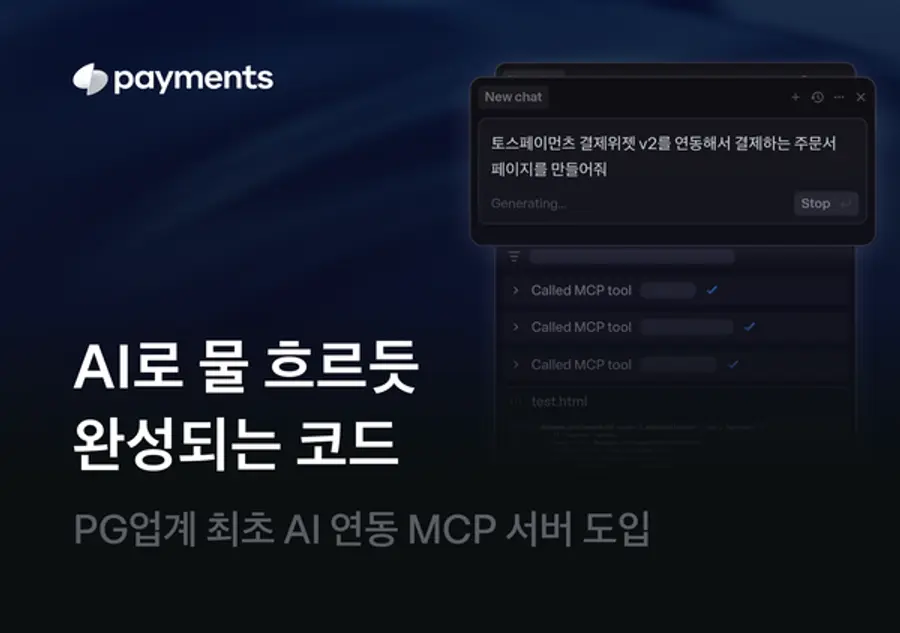 MCP는 이러한 과정을 AI 기술로 대체하는 서버형 연동 도구다. 개발자는 MCP를 연동한 AI 챗봇에게 “결제창을 연결해줘”, “정기결제 연동하고 싶어” 등 자연어로 명령하는 것만으로도 코딩 작업을 할 수 있다. 이처럼 AI가 코딩을 하고 인간은 명령만 하는 프로그래밍 방식은 ‘바이브 코딩(Vibe Coding)’이라고 불리며 IT업계에 확산하고 있다. 토스페이먼츠는 바이브 코딩 방식을 PG 업계에 적용한 첫 사례를 만들었다.