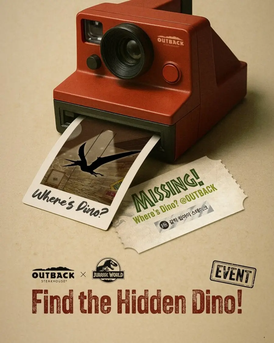 지난 16일부터 전국 아웃백 매장에서는 ‘숨은 공룡 찾기 미션’이 펼쳐지고 있다. 아웃백을 찾은 고객들은 메뉴북 내 간지를 통해 안내된 세 가지 공룡 그림자를 매장 내에서 찾아 사진을 찍고, 결제 시 매장 담당자에게 제시하면 된다.