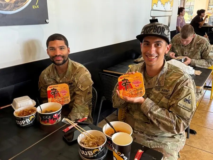 기지 내 ‘CUPBOP’ 매장에서는 신라면을 비롯해 신라면 툼바와 순라면까지 총 3개의 농심 라면 메뉴가 운영된다. 라면은 현장에서 즉석조리기로 조리되며, 끓인 라면 위에 불고기, 제육볶음, 만두 등 다양한 K푸드 토핑을 더해 취향에 맞는 라면을 즐길 수 있다.