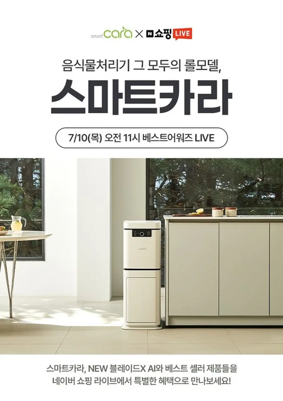 |스마트투데이=이은형 기자 | 음식물처리기 브랜드 스마트카라가 오는 10일 오전 11시 네이버 쇼핑라이브 상반기 결산 ‘베스트 어워즈’ 라이브 방송을 진행한다고 9일 밝혔다.