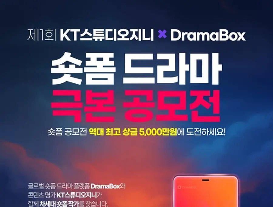 |스마트투데이=이주영 기자| kt그룹 종합 콘텐츠 스튜디오인 kt 스튜디오지니(대표 정근욱)는 글로벌 숏폼 플랫폼 드라마박스(DramaBox)와 함께 '제1회 숏폼 드라마 극본 공모전'을 개최한다고 14일 밝혔다.