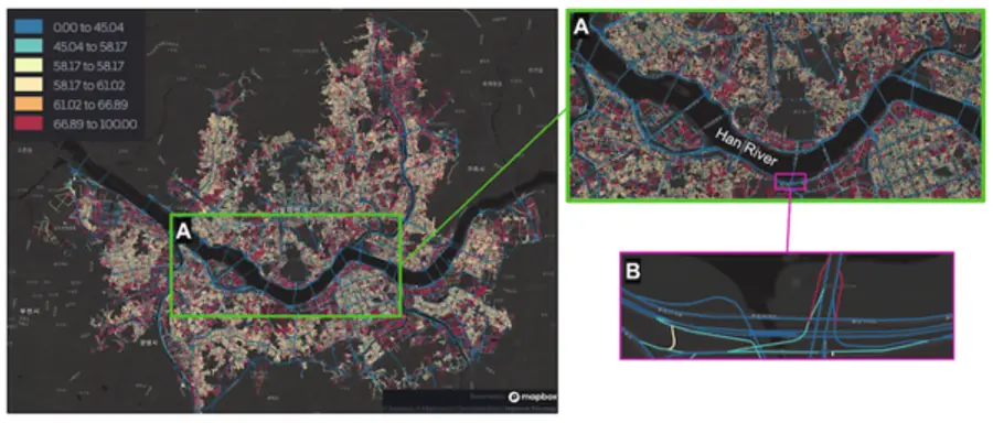 실제로 동작대교 남단~올림픽대로 진입 구간과 같이 대기열로 인해 사용자들의 내비 경로 이탈이 잦아지는 도로나 복잡한 골목길, 환승센터 인근 혼잡 구간, 고저 차가 큰 산간 도로 등 기존 내비게이션이 반영하지 못했던 불편 구간을 감지하고 실시간 경로 탐색에 반영할 수 있게 됐다.