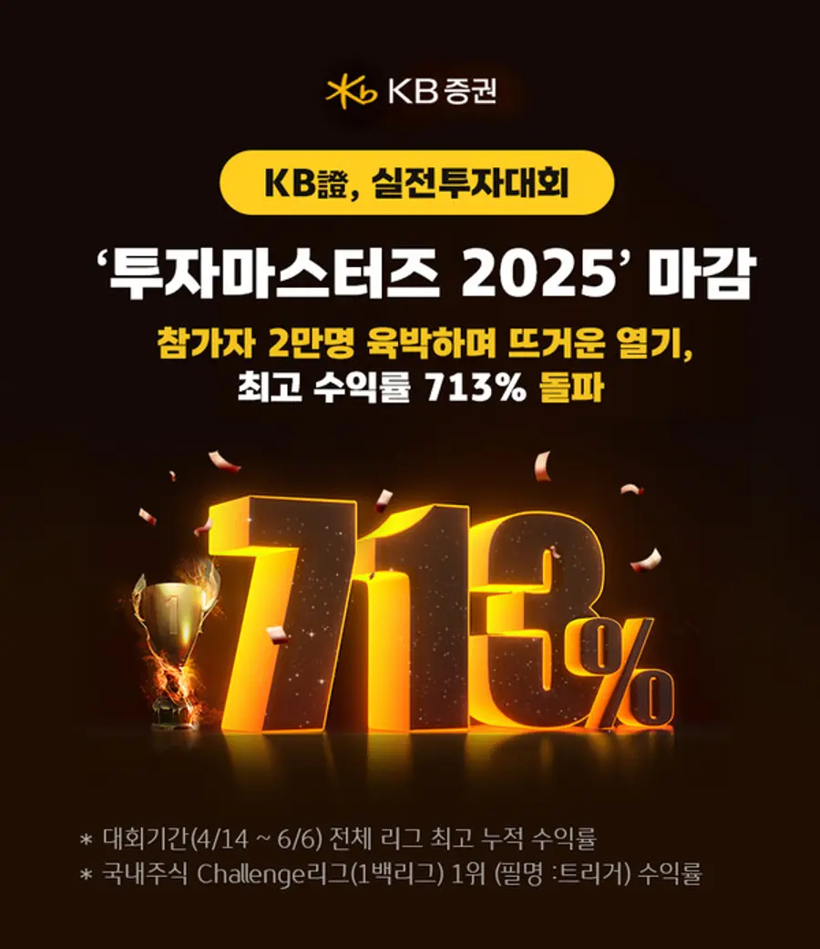 |스마트투데이=김세형 기자| KB증권(대표이사 이홍구, 김성현)은 실전투자대회 ‘투자마스터즈 2025’가 성황리에 종료했다고 15일 밝혔다.