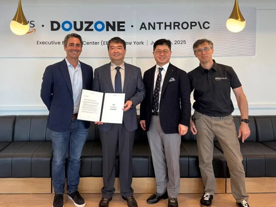 |스마트투데이=이주영 기자| ㈜더존비즈온(회장 김용우)은 AI 기술 활용 및 글로벌 확산을 위해 글로벌 클라우드 기업 ‘아마존웹서비스(Amazon Web Services, 이하 AWS)’와 인공지능(AI) 시장을 선도하는 AI 스타트업 ‘앤트로픽(Anthropic)’과 함께 업무협약을 체결했다고 17일 밝혔다.