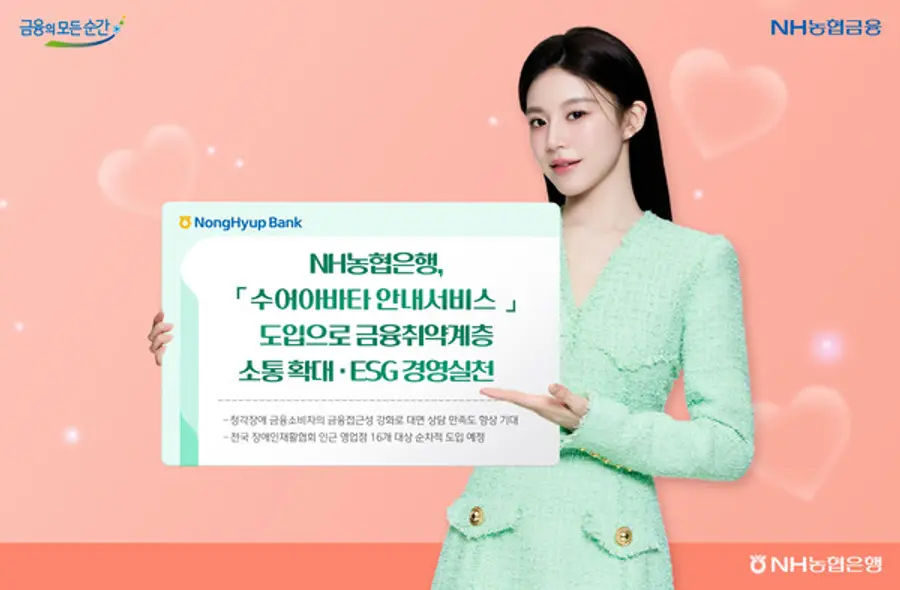 농협은행은 그간 전문 수어상담사와 연결하는 '수어 화상상담 서비스'와, 쉬운 용어로 설명하는 '쉬운 말 채팅 서비스'를 운영해왔다. 이번 수어 아바타 도입으로 대면 창구에서도 고객의 소통만족도를 높이는 보다 입체적인 서비스가 가능해질 전망이다.