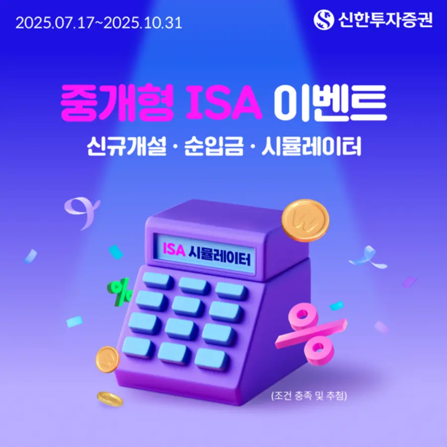 |스마트투데이=김세형 기자| 신한투자증권은 오는 10월 31일까지 ‘중개형 ISA 통합 이벤트’를 진행한다고 25일 밝혔다.