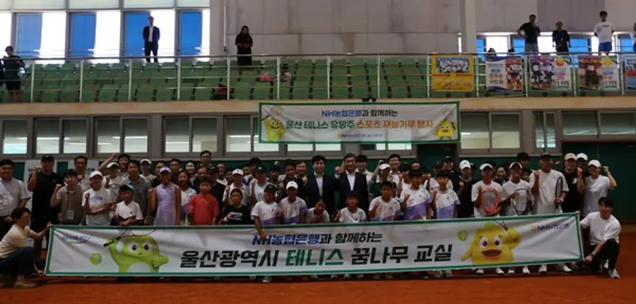|스마트투데이=김윤진 기자| NH농협은행은 1일 울산과학대학교에서 울산 지역 4개 초등학교 및 2개 중학교 학생 27명을 대상으로 테니스 꿈나무 교실을 열었다.