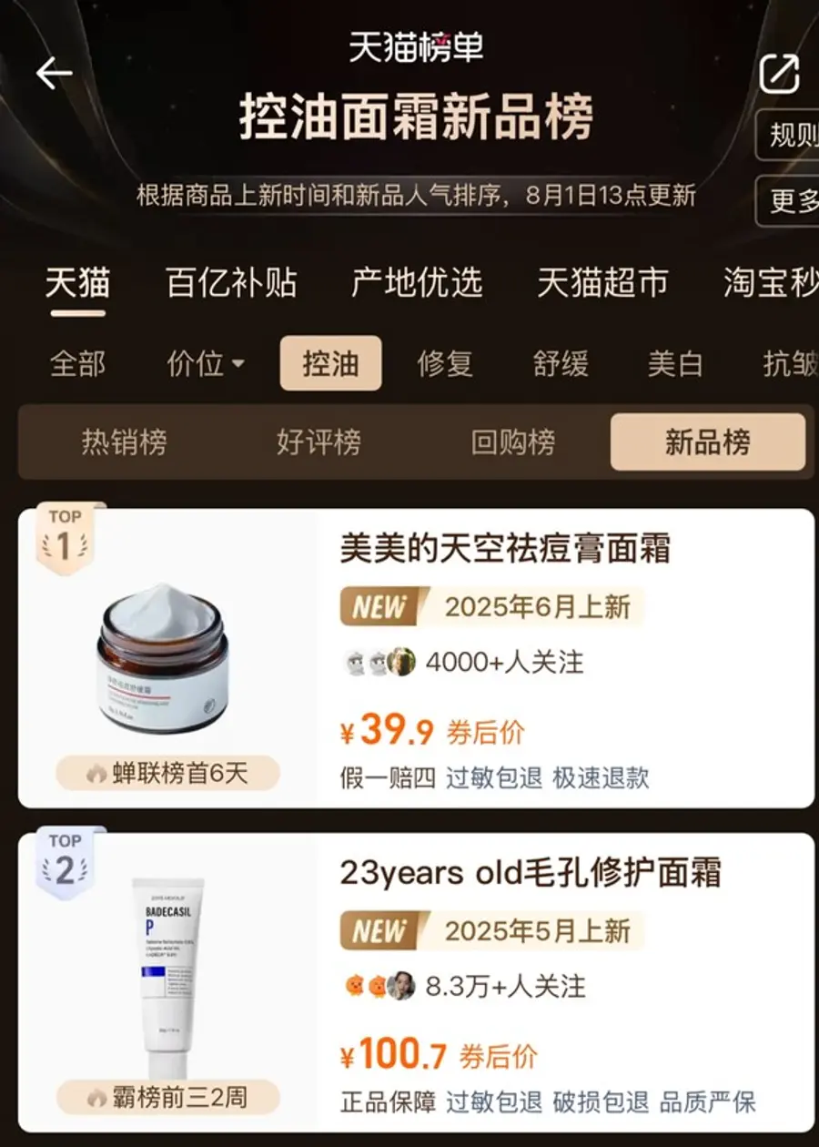 특히, 자사의 대표 제품 ‘바데카실 크림’은 8월 티몰 글로벌 뷰티 카테고리 내 신규 브랜드 지성·여드름성 피부 크림 부문에서 2위에 올랐다.
