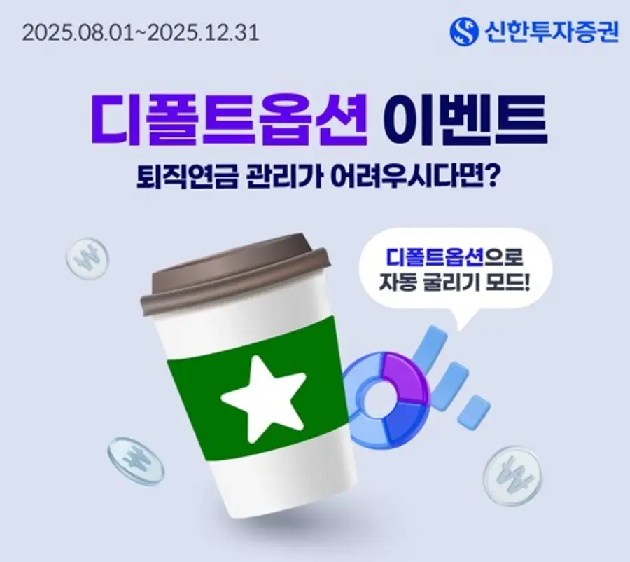 ‘디폴트옵션 등록 이벤트’는 퇴직연금 DC형 및 개인형 IRP 고객 중 디폴트옵션을 새롭게 지정한 고객을 대상으로 진행된다. 매월 총 500명을 추첨해 스타벅스 커피 쿠폰을 제공하며, DC형과 개인형 IRP 모두를 지정한 경우 최대 2잔까지 받을 수 있다.