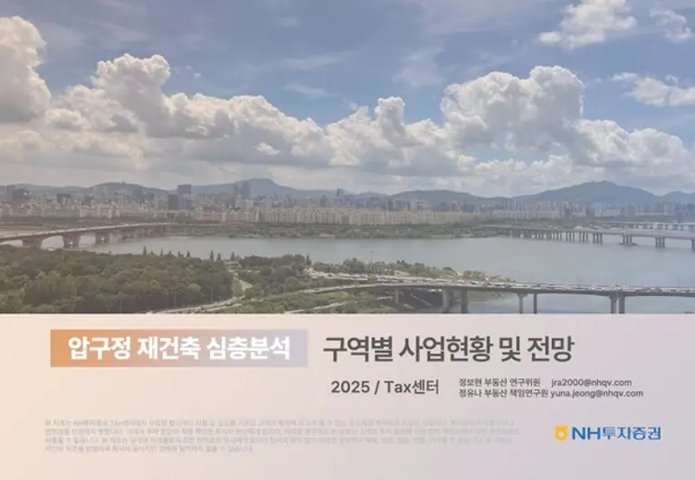 |스마트투데이=김세형 기자| NH투자증권(대표이사 윤병운)이 '압구정 재건축 심층분석–구역별 사업현황 및 전망' 보고서를 19일 발간했다.