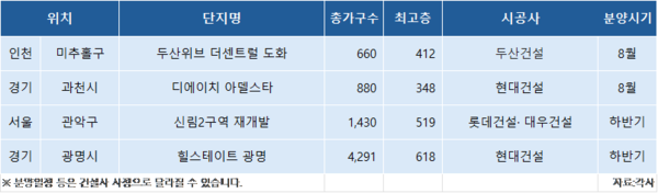 ◇ 하반기 수도권 정비사업 분양 물량 주목