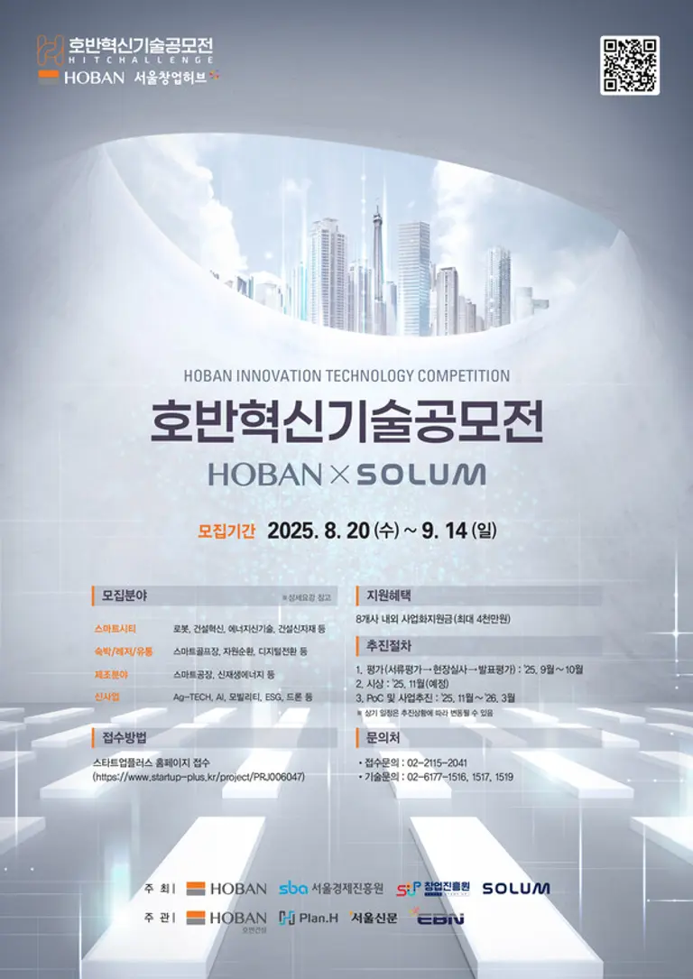 호반그룹은 ‘2025 호반혁신기술공모전(2025 HIT CHALLENGE)’를 개최한다고 20일 밝혔다. 이번 공모전은 그룹의 미래 경쟁력 강화를 목표로 혁신기술을 보유한 기업을 발굴·육성하는 대표적인 오픈이노베이션 프로그램이다.