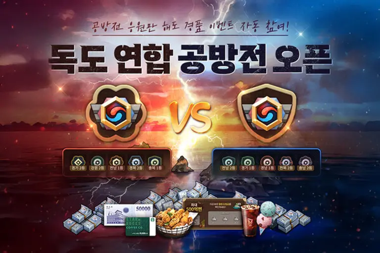 ‘독도 연합 공방전’은 기존의 ‘독도 수호전’에 이어 독도의 왕좌를 차지하기 위해 펼쳐지는 대규모 경쟁 콘텐츠다. 최대 5개 동호회가 연합을 구성해 하나의 세력으로 맞붙는 완전히 새로운 경쟁이라는 점이 특징이다. 현재까지 동호회별 단독 경쟁이 중심이었다면, 이번에는 전략적 협력이 승부의 결정적 요인이 될 수 있다.