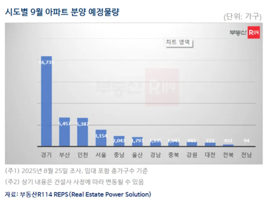 26일 부동산R114에 따르면 오는 9월 전국에서 총 53개 단지, 3만8979가구(임대 포함)가 분양에 나선다. 이는 2023년 10월(1만2581가구) 이후 약 2년 만에 재개발·재건축· 등 정비사업지 최다 공급 물량이다.