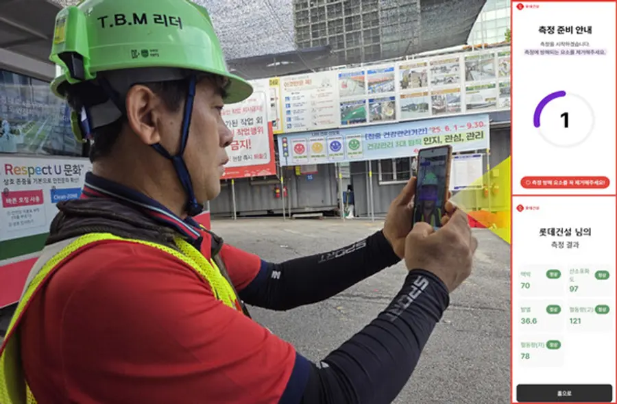 |스마트투데이=이재수 기자| 롯데건설이 스마트폰으로 현장 근로자 건강상태를 체크할 수 있는 앱(Application)을 개발하고 9월부터 현장에 적용할 예정이라고 28일 밝혔다.