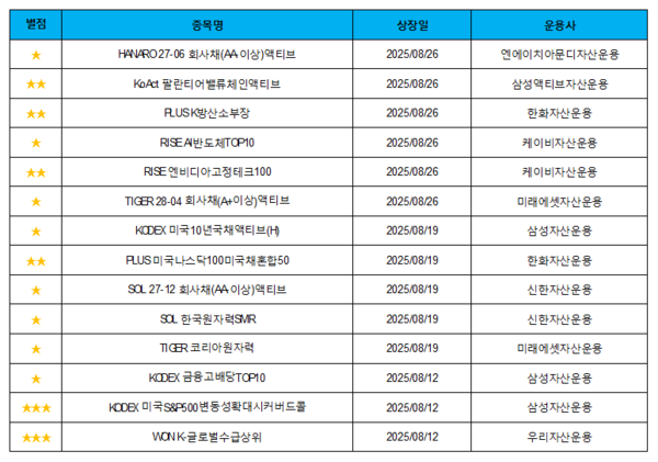 |스마트투데이=심두보 기자| 2025년 8월 새롭게 상장된 ETF는 14개다.
