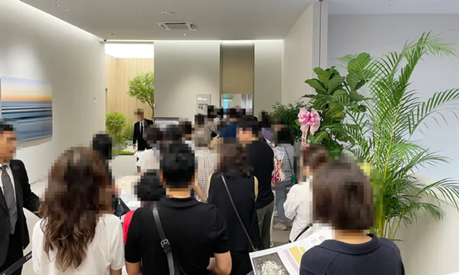 1일 HDC현대산업개발에 따르면 지난달 29일 문을 연 견본주택에는 주말까지 사흘간 약 1만여 명의 방문객이 다녀간 것으로 집계됐다. 개관 첫날부터 비가 내리는 궂은 날씨에도 불구하고 이른 아침부터 대기줄이 길게 늘어서며 인기를 입증했다. 내부 유니트와 상담석은 분양가와 청약 조건을 확인하려는 방문객들로 붐볐다.