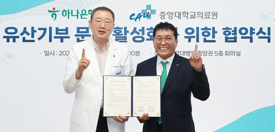 |스마트투데이=김윤진 기자| 하나은행은 전일 중앙대학교의료원과 유산 기부 활성화를 위한 업무협약을 체결했다고 5일 밝혔다.