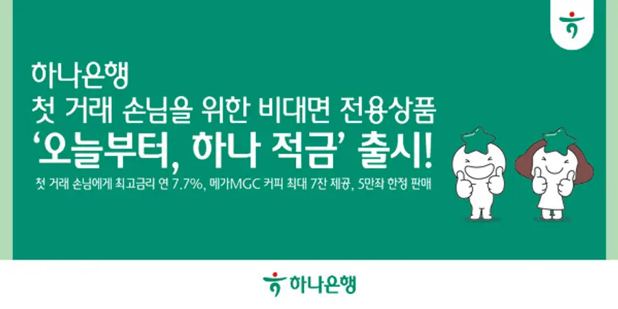 하나은행 관계자는 “하나은행과 처음 거래하는 손님에게 복잡한 조건 없이도 실질적인 혜택이 돌아갈 수 있도록 상품을 기획했다”며, “앞으로도 하나은행과 처음 거래하는 손님을 위한 다양한 금융혜택을 제공해 차별화된 서비스를 확대해 나가겠다”고 밝혔다.