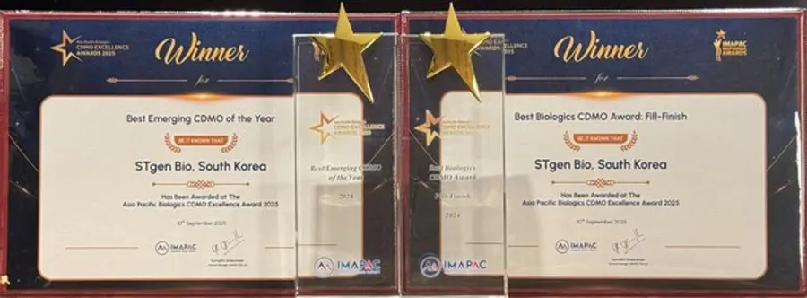 |스마트투데이=김세형 기자| 에스티젠바이오(대표이사 최경은)는 10일(현지시간) 싱가포르에서 개최된 ‘Asia-Pacific Biologics CDMO Excellence Awards(이하 APBCEA, 2025 아시아 태평양 바이오의약품 CDMO 어워즈)'에서 2개 부문을 동시에 석권했다고 11일 밝혔다.