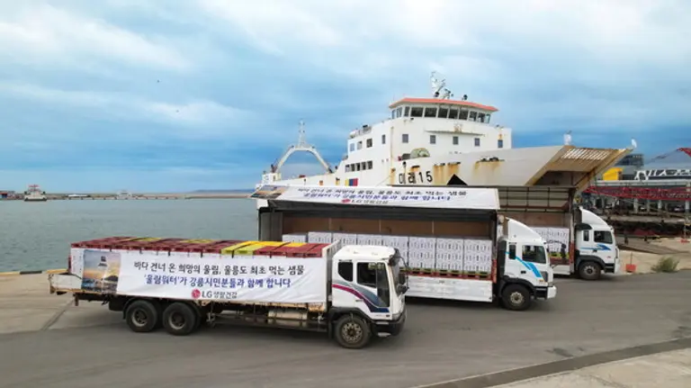 LG생활건강은 지난 12일 강릉시에 울림워터 1차 지원분(13만 1520병)을 전달했다.