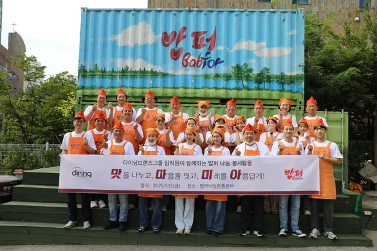 이훈종 다이닝브랜즈그룹 최고운영책임자(COO)를 비롯한 임직원 20명이 자발적으로 참여한 이번 활동에서, 참가자들은 먼저 큰맘할매순대국 매장에서 판매하는 육개장과 내장탕을 각각 600인분씩 전달했다. 이후 간단한 교육을 받은 뒤 600인분의 내장탕을 직접 조리·배식하고 설거지까지 마무리했다.