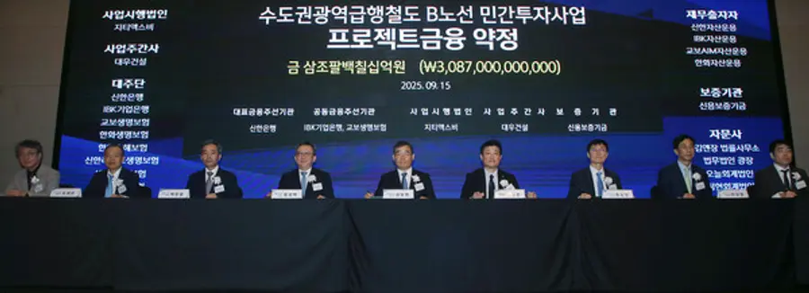 |스마트투데이=김윤진 기자| 신한은행은 ‘수도권광역급행철도(GTX) B노선 민간투자사업’의 대표 금융주선기관으로서 총 3조 870억원 규모의 금융주선을 성공적으로 완료하고, 15일 프로젝트금융 약정식을 개최했다.
