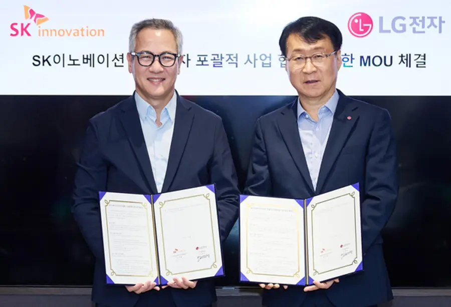 LG전자는 17일 서울 종로구 SK서린빌딩에서 SK이노베이션과 ‘AI 데이터센터 에너지-냉각 통합 솔루션 공동개발 및 사업화’를 위한 업무협약(MOU)을 체결했다. 협약식에는 LG전자 ES사업본부장 이재성 부사장, SK이노베이션 김무환 에너지솔루션 사업단장 등이 참석했다.