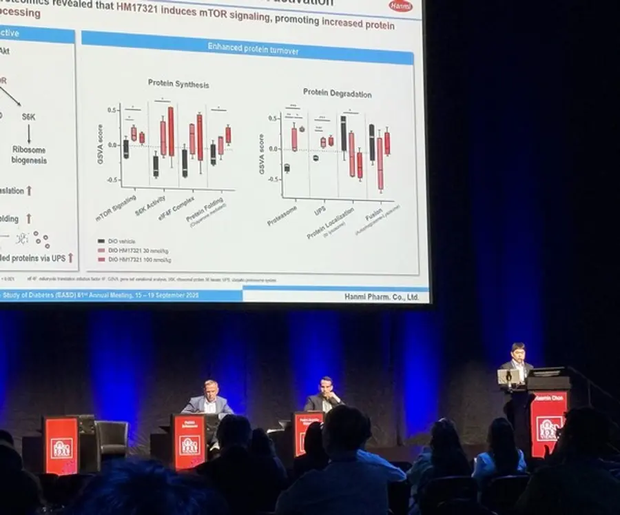 한미약품은 지난 15일부터 19일까지 오스트리아 비엔나에서 열린 제61회 유럽당뇨병학회(EASD 2025)에서 차세대 비만치료 삼중작용제(LA-GLP/GIP/GCG, HM15275)와 신개념 비만치료제(LA-UCN2, HM17321), 경구용 비만치료제(HM101460) 등 3개 비만 신약에 대한 6건의 비임상 연구 결과를 발표했다고 23일 밝혔다.