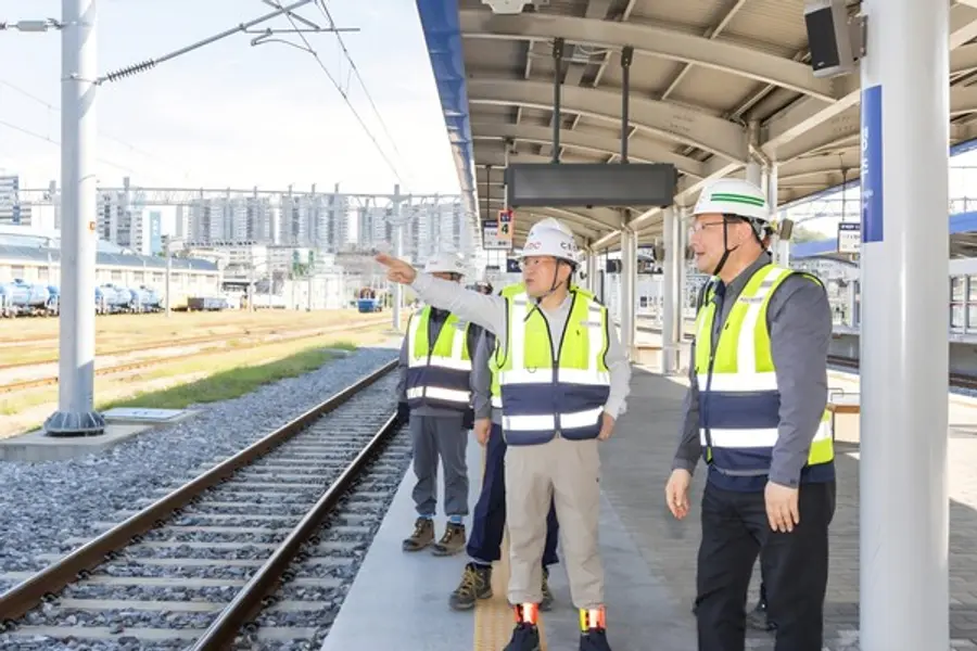 HDC현대산업개발은 지난 26일 경상북도 영주시 도담–영천 복선전철 4공구 현장에서 정경구 대표이사(CEO)가 직접 주관하는 안전 점검을 진행했다고 29일 밝혔다. 이번 현장은 열차가 상시 운행되는 구간과 인접해 있어 철저한 안전 확보가 필수적인 구간이다. 이날 안전점검에는 정경구 대표이사와 조태제 대표(CSO), 김영한 인프라 본부장 등이 동행해 세부 작업현황은 물론 직원들의 애로사항도 경청했다.