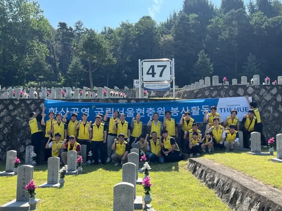 한편 ‘한신孝플러스봉사단’은 기업이념인 ‘효(孝)’ 정신을 실천하고자 2015년 출범한 이후 매년 1회 이상 정기적으로 현충원 봉사활동을 이어오고 있다. 특히 2023년 10월에는 국립서울현충원과 ‘1사1묘역’ 자매결연을 체결하고, 지정된 묘역을 지속적으로 관리하며 국가유공자에 대한 예우를 실천하고 있다.