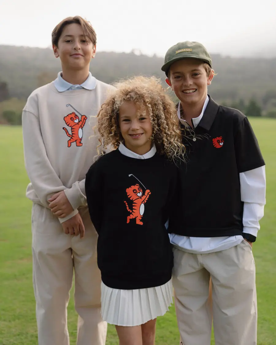 주력 제품인 ‘유스 스타디움 자켓’은 브랜드 베스트셀러를 모티브로 했다. 스포티한 자켓 디자인으로 학교·운동·방과 후 활동·여행 등 다양하게 입을 수 있다. 신축성 있는 허리 밴딩 덕에 볼륨감 있는 스타일링이 가능하며, 목과 허리의 통일감 있는 컬러 배색으로 멋을 더했다. 뒷면에 스윙을 하는 ‘유스 타이거’ 버킷 빅 로고가 위트 있다. 기장과 품에 여유를 준 릴렉스 핏이며, 가볍고 신축성 좋은 수입 소재를 사용해 움직임이 편하다. 유사한 디자인의 성인용 자켓도 있어 패밀리 룩 연출하기에도 좋다.