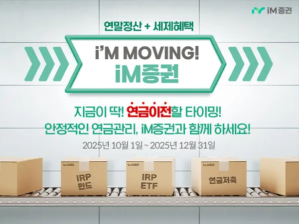 |스마트투데이=김세형 기자| iM증권은 12월 31일까지 ‘연금 자산 이벤트’를 진행한다고 1일 밝혔다.