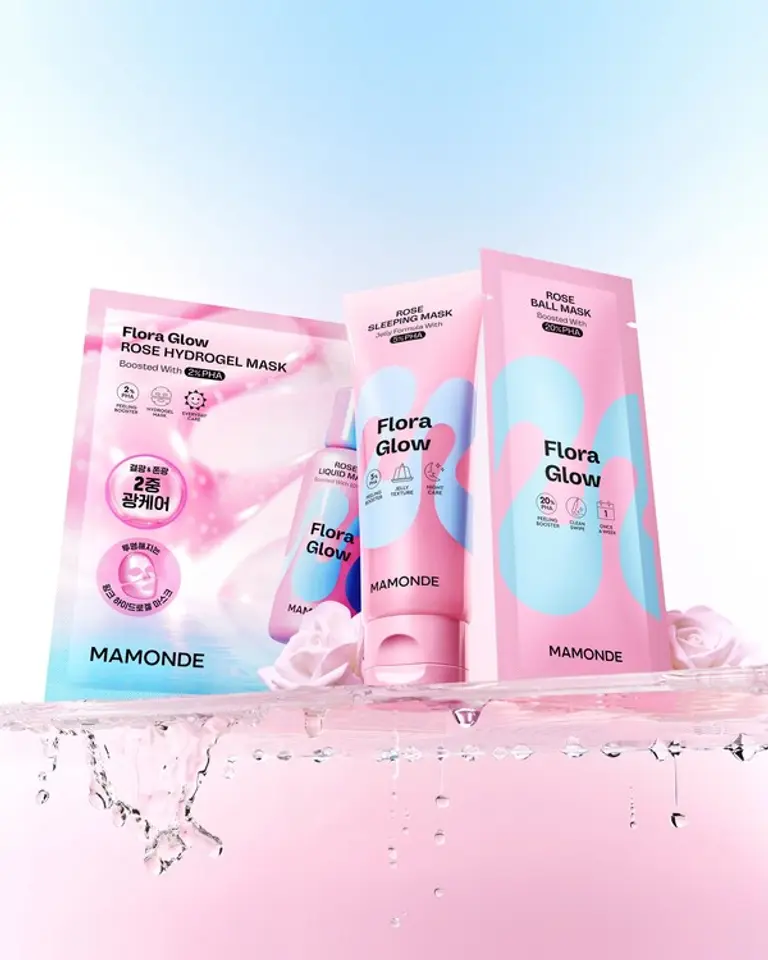 신제품은 '하이드로겔 마스크', '슬리핑 마스크', '볼 마스크' 3종이며, 수분 결광 관리에 특화된 제품들로 피부 컨디션과 선호 제형에 따라 선택 가능하다. '플로라 글로우 로즈' 라인의 핵심 성분이자 차세대 필링 성분인 PHA가 공통 함유되어 있으며, 탄력에 도움을 주는 '로즈PDRN'과 '비건 유사 콜라겐'이 추가됐다.