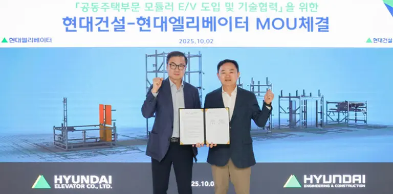 |스마트투데이=김세형 기자| 현대엘리베이터는 모듈러 엘리베이터 적용을 위해 현대건설과 업무협약(MOU)을 맺었다고 2일 밝혔다.