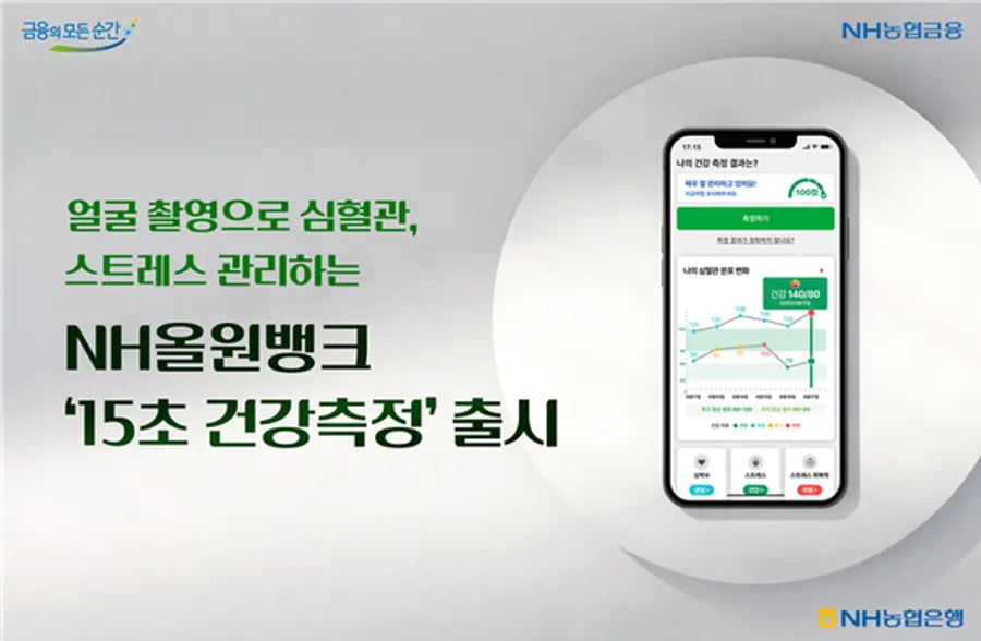 |스마트투데이=김윤진 기자| NH농협은행은 농협금융 대표플랫폼 NH올원뱅크에서 얼굴 촬영만으로 심혈관 상태와 스트레스 지수를 확인할 수 있는 비대면 헬스케어 서비스‘15초 건강측정’을 출시했다고 10일 밝혔다.