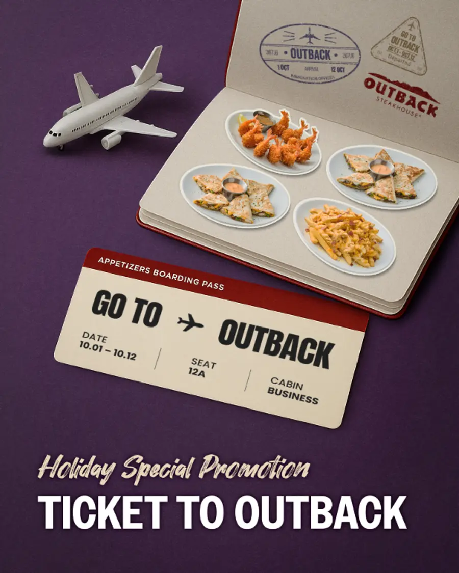 이벤트는 오는 31일까지 전국 아웃백 매장에서 아웃백 멤버십 회원을 대상으로 진행된다. 쿠폰 금액 제외 7만원 이상 주문 후, 10월 1일부터 12일까지의 기간 내 국내외 관계없이 탑승 이력을 보여줄 수 있는 항공권을 제시하면 인기 애피타이저 4종 ▲앨리스 스프링스 치킨 퀘사디아 ▲카카두 그릴러 비프 퀘사디아 ▲골드 코스트 코코넛 슈림프 ▲오지 치즈 후라이즈 중 고객이 선택한 메뉴 1종을 무료로 받을 수 있다.
