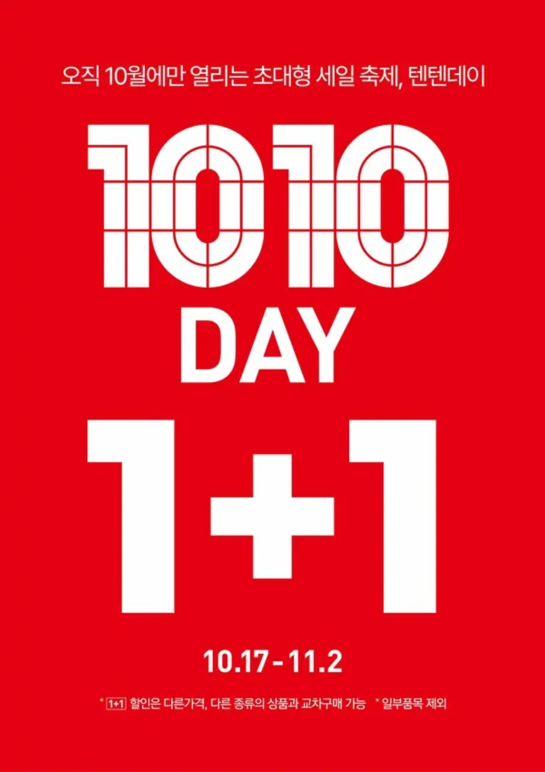 일년에 한번 10월에 열리는 텐텐데이는 탑텐의 신제품부터 베스트셀러까지 다양한 제품에 '1+1 혜택'과 '최대 80% 릴레이 특가'로 선보인다.