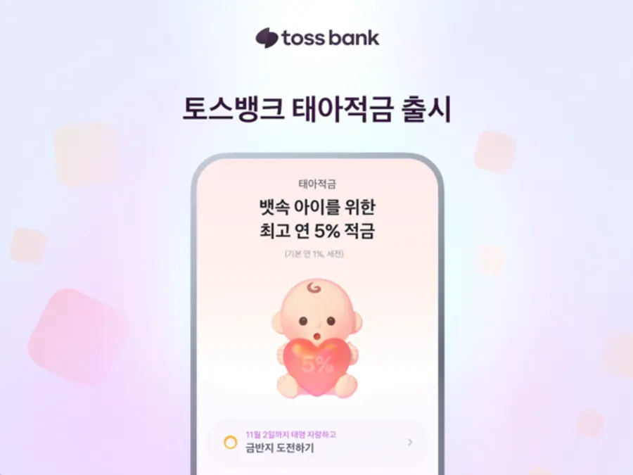 |스마트투데이=김윤진 기자| 아직 아이가 세상에 태어나지 않았더라도, 이제는 아이를 위한 적금을 미리 시작할 수 있다. 토스뱅크는 아이를 기다리는 예비 부모를 위한 ‘태아적금’을 출시했다고 21일 밝혔다.