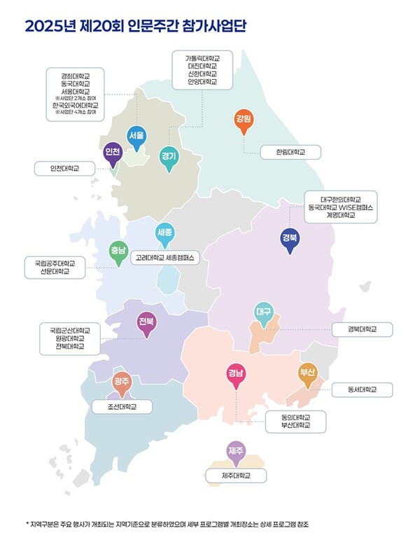 인문주간 행사는 인문학 대중화와 인문학 관련 연구 성과의 확산을 위해 매년 10월 마지막 주에 운영되며, 올해 제20회 인문주간은 ‘다시, 잇다 – 인문학으로 잇는 지역과 공동체’라는 주제로 열린다.