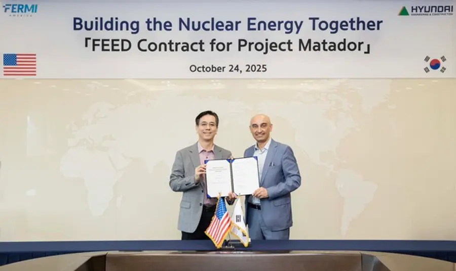 지난 24일 서울 종로구 현대건설 본사에서 열린 계약 서명식에는 이한우 현대건설 대표와 메수트 우즈만(Mesut Uzman) 페르미 뉴클리어(Fermi Nuclear LLC.) 대표 등 양사 주요 관계자들이 참석했다. 이 대표는 계약 체결 직후 홍콩으로 이동해 토비 노이게바우어(Toby Neugebauer) 페르미 아메리카 CEO와 만나 대형원전 EPC 추진 일정과 협력 방안을 논의했다.